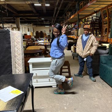 Volunteers support our warehouse and client services by assisting with light furniture and lamp refurbishment, cleaning and sorting household goods and linens, and helping clients select furniture for their homes.